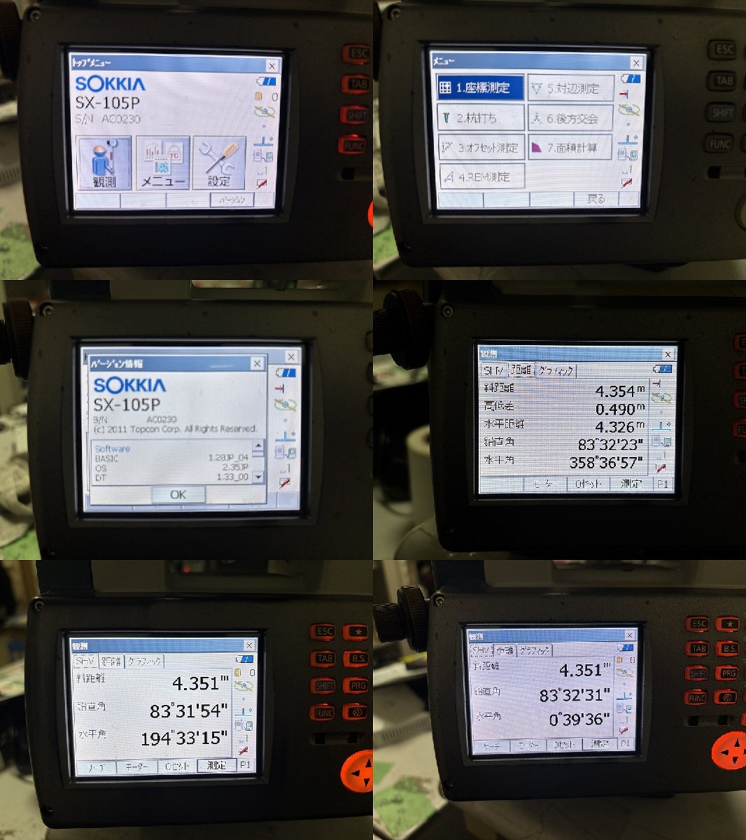 | 機器状態 | バッテリーは充電しました。バッテリーで通電し、チルトを画面で合わせた後、自動視準の後 プリズムをターゲットに測距動作を確認しました。次に白い壁をターゲットにノンプリズムモードで測距しました。ターゲットに対してレーザーの照射確認。 校正を行っておりませんので数値の保証はいたしかねます。出品者は専門業者ではございませんので上記の簡易動作しか見ておりません。校正を前提とした現状品としてご入札ください。正面のタッチ液晶に使用感はあります。また筐体の角々にも使用感および使用瑕はございます。 |